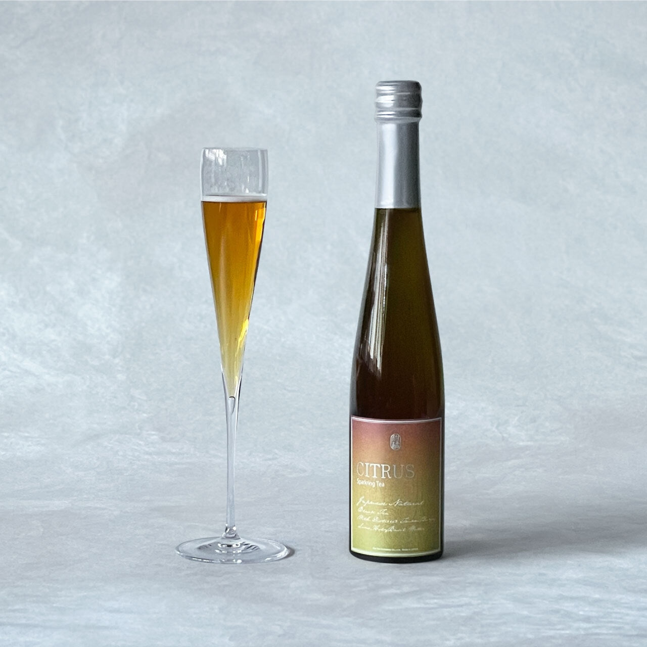 和紅茶をベースに国産のフルーツとハーブをブレンドした スパークリングティーです。柑橘(タンカン・柚子・ライム)の爽やかな香りに甘いホーリーバジルのアクセントが心地 よく広がります。食前の乾杯や、食中にも合わせてお楽しみください。