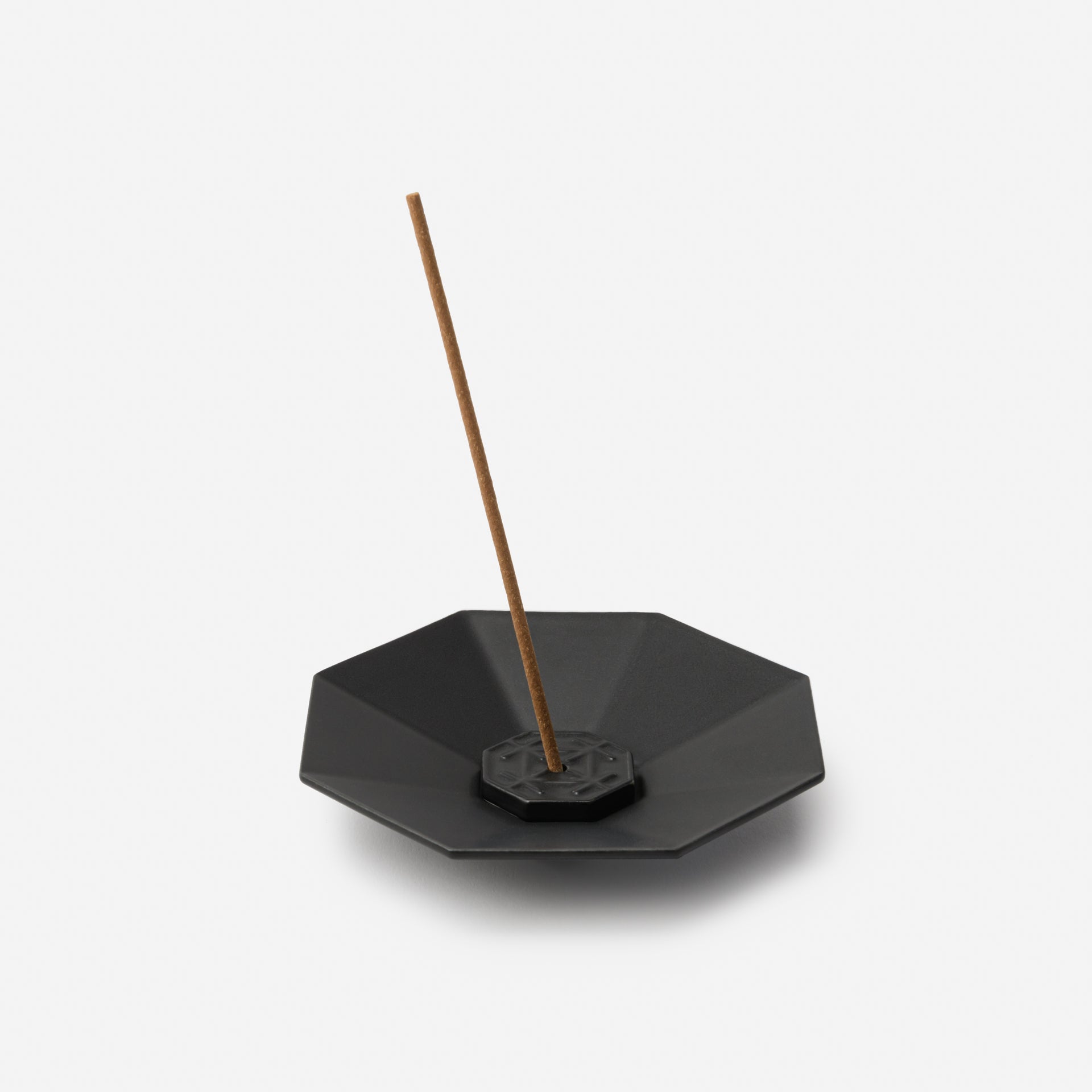To use the Porcelain Incense Plate Octagon, place the included incense holder in the center and insert the incense stick into the hole, ensuring that the ashes fall onto the plate. The hole in the included incense holder is designed to fit the diameter (thickness) of KITOWA Incense, so please exercise caution when using thinner incense sticks, as they may not fit securely, and ashes could potentially fall outside the plate.