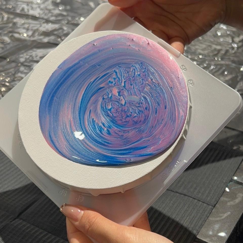 たらし込みアートとも呼ばれ、お好きなカラーの絵の具をキャンバスの上に流し、傾けながらマーブルのような不思議な模様を生み出します。